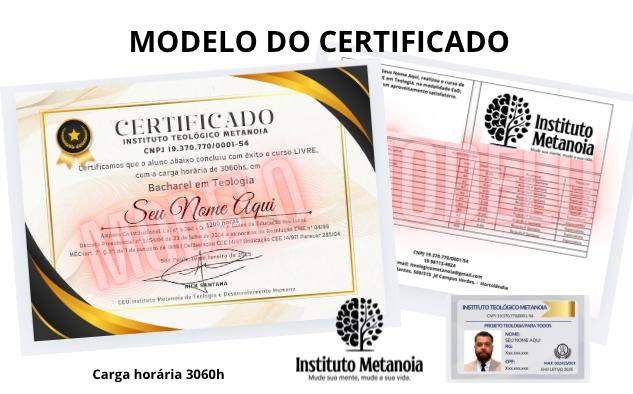 BACHAREL LIVRE EM TEOLOGIA CERTIFICADO COM HISTÓRICO E CARGA HORÁRIA DE 3060hs
